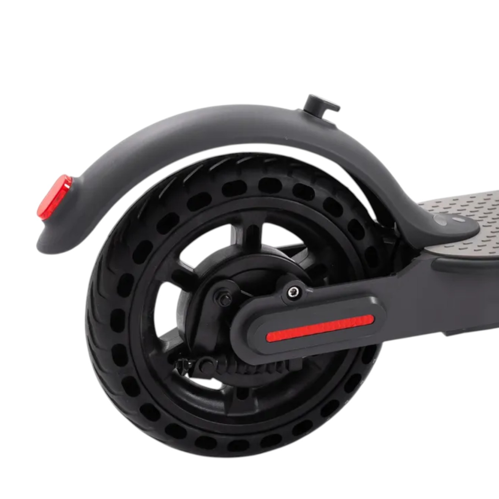 При мощности двигателя в 350 Вт и емкости батареи 36V, 7.8 Ah модель способна развивать скорость до 25 км час. Запас хода составляет 30 км.