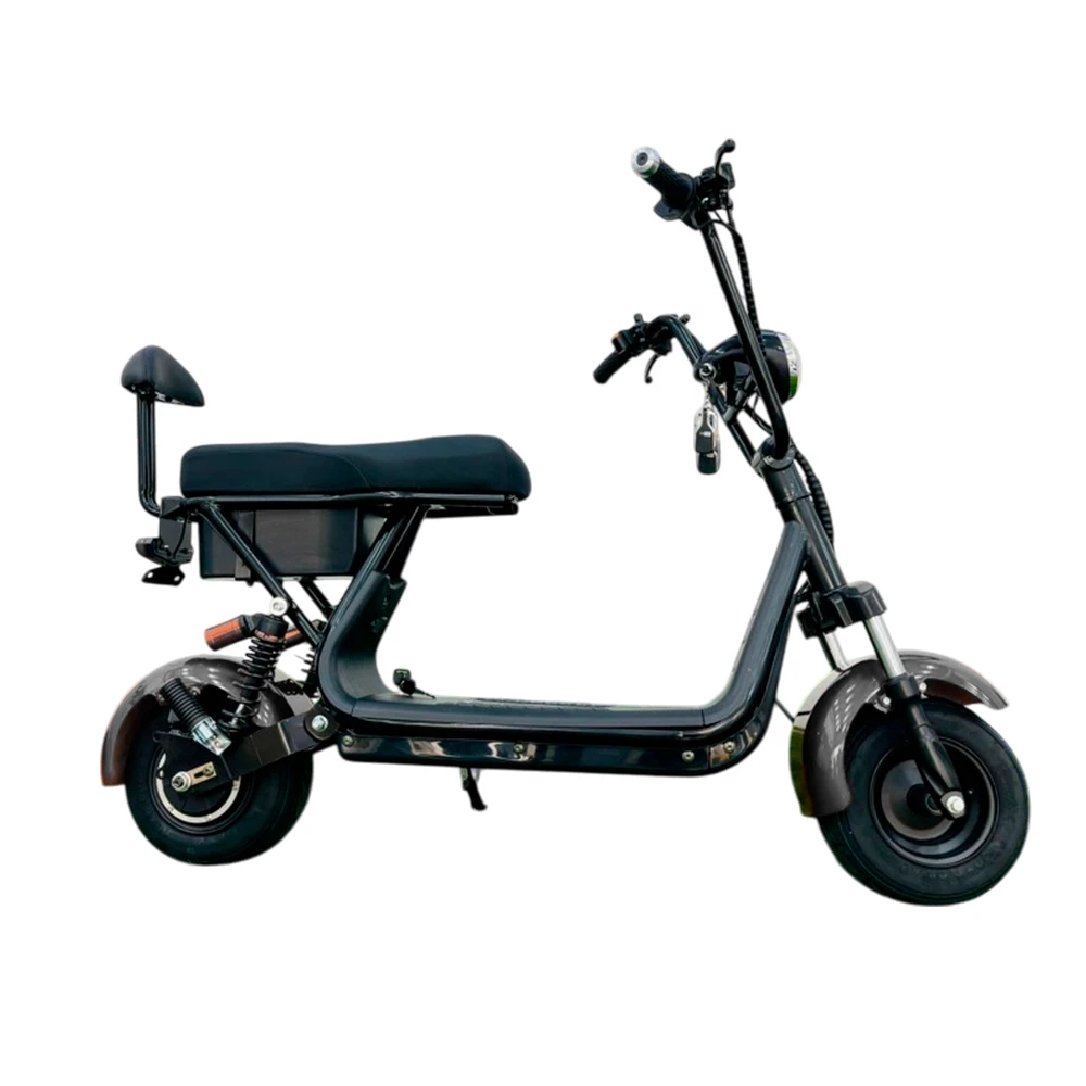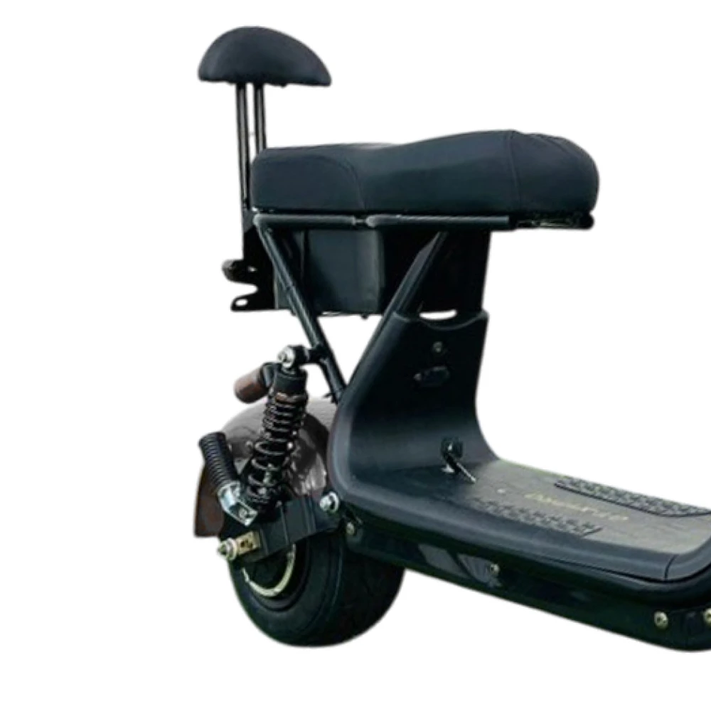 Электроскутер предназначен для 2-х ездоков, один из которых пассажир. Комфорт езды на дальние расстояния обеспечены анатомическим сиденьем. Пассажирское оснащено мягкой спинкой. В целом особенности сиденья снимают ощущения усталости и нагрузку на позвоночник.