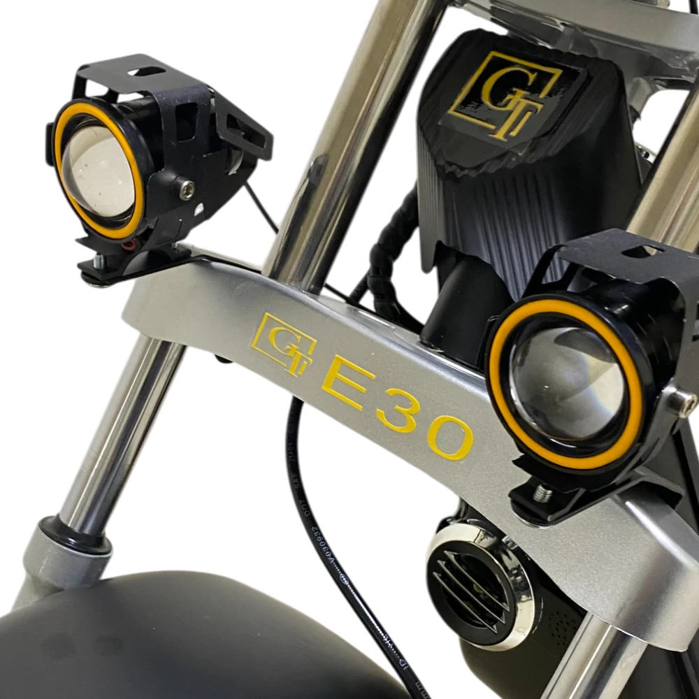 Электроскутер Citycoco GT E30 в черном глянцевом цвете — это универсальное средство передвижения. С мощностью 3000W и задним приводом, он обеспечивает отличную динамику и маневренность на городских улицах. Благодаря двухколесной конструкции и надувным колесам диаметром 18 дюймов, скутер уверенно держится на дороге, что делает его идеальным для поездок по различным покрытиям.Съемный аккумулятор с напряжением 60V позволяет преодолевать расстояние до 50 км на одном заряде, что делает его идеальным вариантом для ежедневных поездок. Время зарядки составляет всего 5 часов, что обеспечивает быструю готовность к новым приключениям. Кроме того, в конструкции предусмотрено дополнительное место под аккумулятор, что увеличивает возможности автономной работы.Скутер весит 75 кг и может выдерживать максимальную нагрузку до 200 кг, что делает его подходящим для различных пользователей. Дисковые гидравлические тормоза обеспечивают надежную остановку, а большое мягкое сиденье и амортизаторы гарантируют комфорт даже при длительных поездках.Дополнительно, Citycoco GT E30 оснащен бортовым компьютером, зеркалами, звуковым сигналом, фарой и поворотниками, что повышает безопасность и удобство. Большая дека под ноги и прочная конструкция делают поездки еще более приятными.Электроскутер Citycoco GT E30 — это идеальное сочетание стиля, мощности и комфорта для тех, кто ценит удобство и скорость в городской среде.