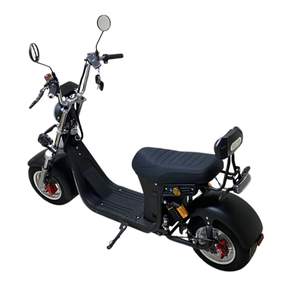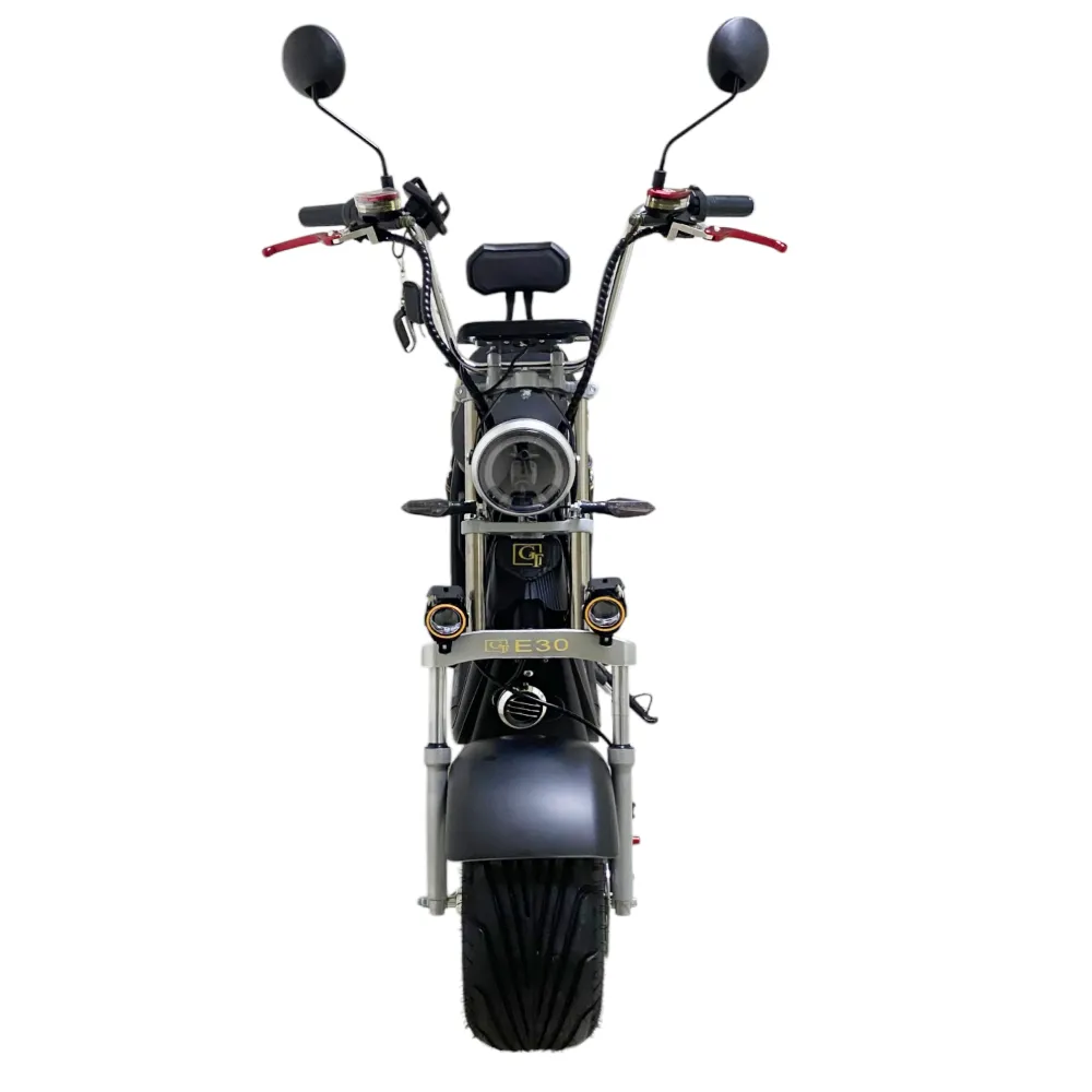Электроскутер Citycoco GT E30 в черном матовом цвете — это универсальное средство передвижения. С мощностью 3000W и задним приводом, он обеспечивает отличную динамику и маневренность на городских улицах. Благодаря двухколесной конструкции и надувным колесам диаметром 18 дюймов, скутер уверенно держится на дороге, что делает его идеальным для поездок по различным покрытиям.Съемный аккумулятор с напряжением 60V позволяет преодолевать расстояние до 50 км на одном заряде, что делает его идеальным вариантом для ежедневных поездок. Время зарядки составляет всего 5 часов, что обеспечивает быструю готовность к новым приключениям. Кроме того, в конструкции предусмотрено дополнительное место под аккумулятор, что увеличивает возможности автономной работы.Скутер весит 75 кг и может выдерживать максимальную нагрузку до 200 кг, что делает его подходящим для различных пользователей. Дисковые гидравлические тормоза обеспечивают надежную остановку, а большое мягкое сиденье и амортизаторы гарантируют комфорт даже при длительных поездках.Дополнительно, Citycoco GT E30 оснащен бортовым компьютером, зеркалами, звуковым сигналом, фарой и поворотниками, что повышает безопасность и удобство. Большая дека под ноги и прочная конструкция делают поездки еще более приятными.Электроскутер Citycoco GT E30 — это идеальное сочетание стиля, мощности и комфорта для тех, кто ценит удобство и скорость в городской среде.