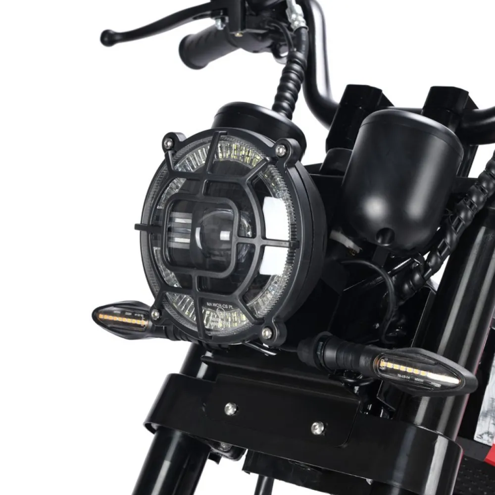Рама выполнена из стали, что гарантирует прочность и долговечность конструкции, а вес устройства составляет около 100 кг. Для комфортной езды предусмотрена двухподвесная пружинная подвеска мотоциклетного типа, которая эффективно сглаживает неровности дороги. Тормозная система — дисковая гидравлическая, обеспечивающая надёжное и безопасное торможение в любых условиях.