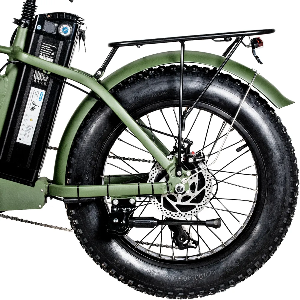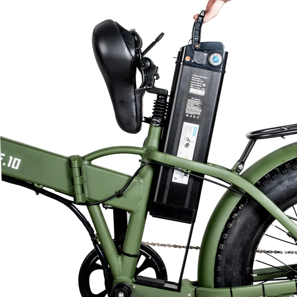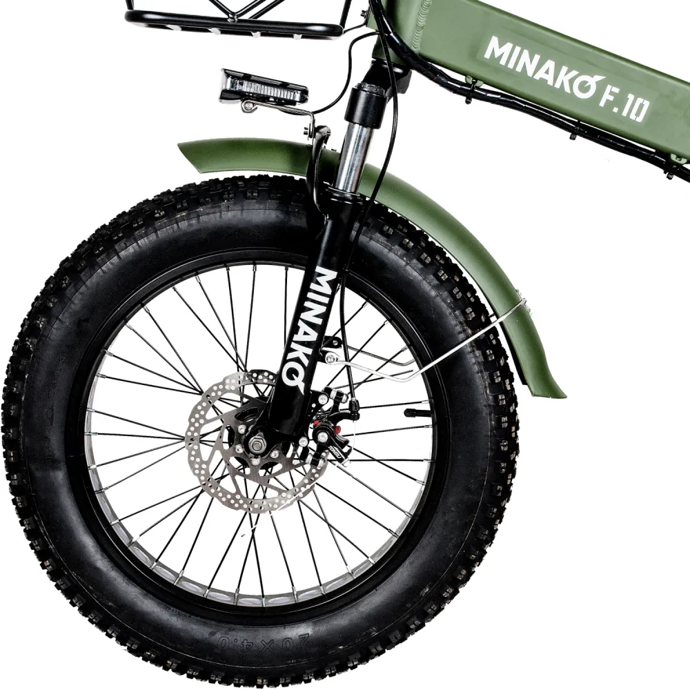 ЭЛЕКТРОВЕЛОСИПЕД MINAKO F10 хаки – выглядит круто и броско в сравнении с аналогичной техникой. При весе 27 кг модель рассчитана на грузоподъемность до 120 кг. Технические характеристики допускают эксплуатацию байка в городской и дачной местности. Для приобретения модели по приемлемой цене предлагаем сделать телефонный звонок менеджеру нашего интернет-магазина.