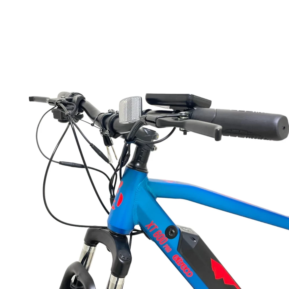 Дизайн Eltreco XT 600 Pro в сине-красном цвете привлекает внимание и подчеркивает вашу индивидуальность. Вы будете выделяться среди других велосипедистов, добавляя ярких красок на улицы города.