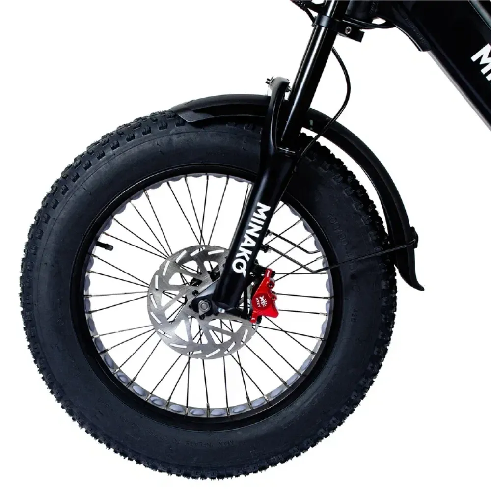 Покрышки FatBike 20x4 обеспечивают отличную проходимость и устойчивость на различных типах местности. Благодаря широким покрышкам, вы сможете справиться с гравием, песком, снегом и другими неровностями. Minako Bizon готов к любым приключениям на бездорожье.