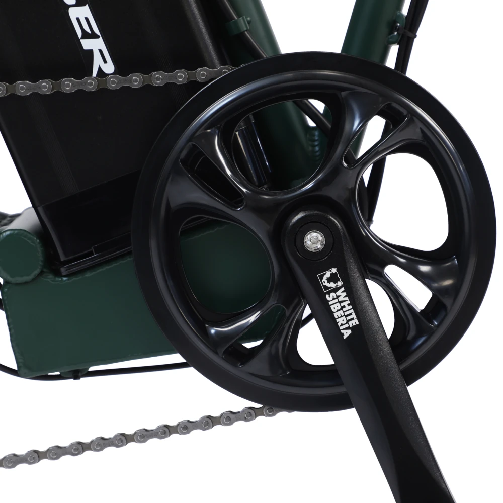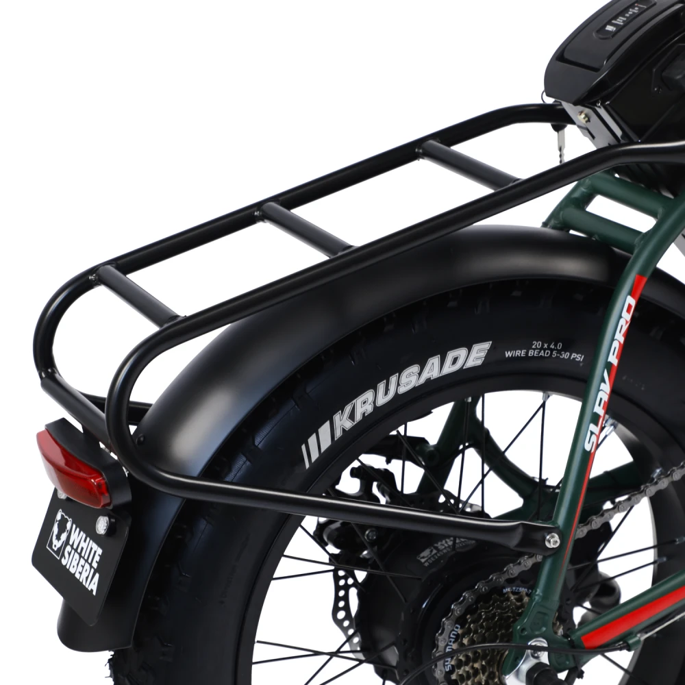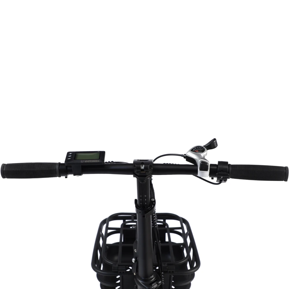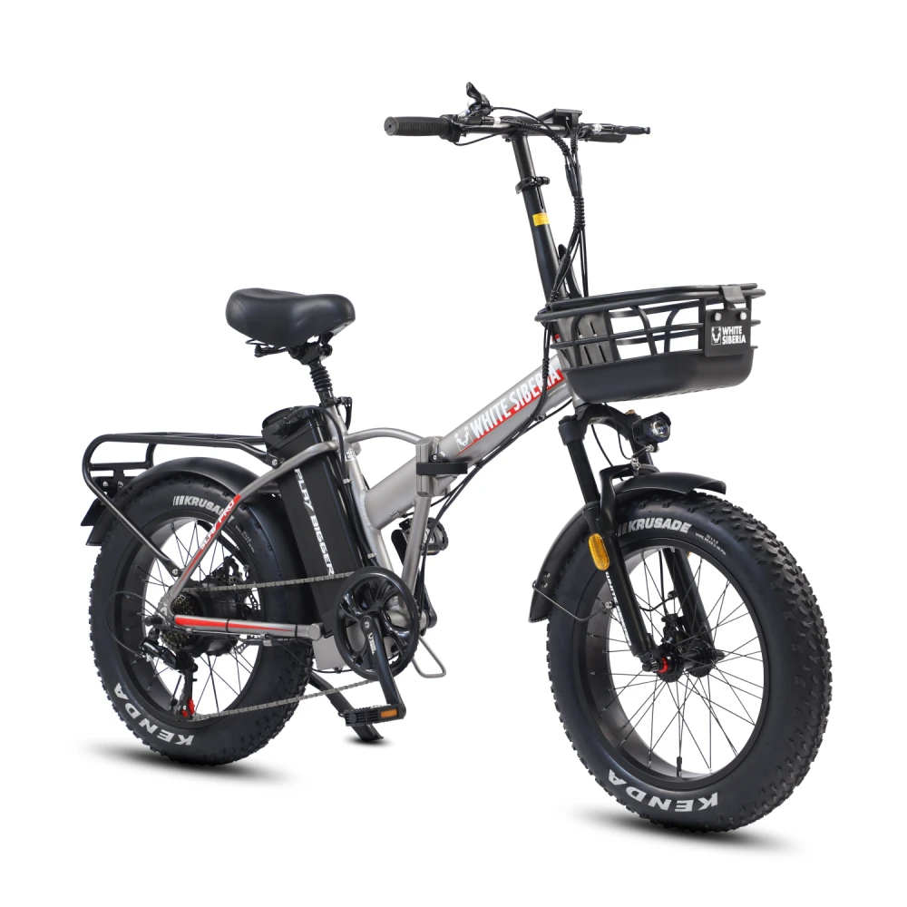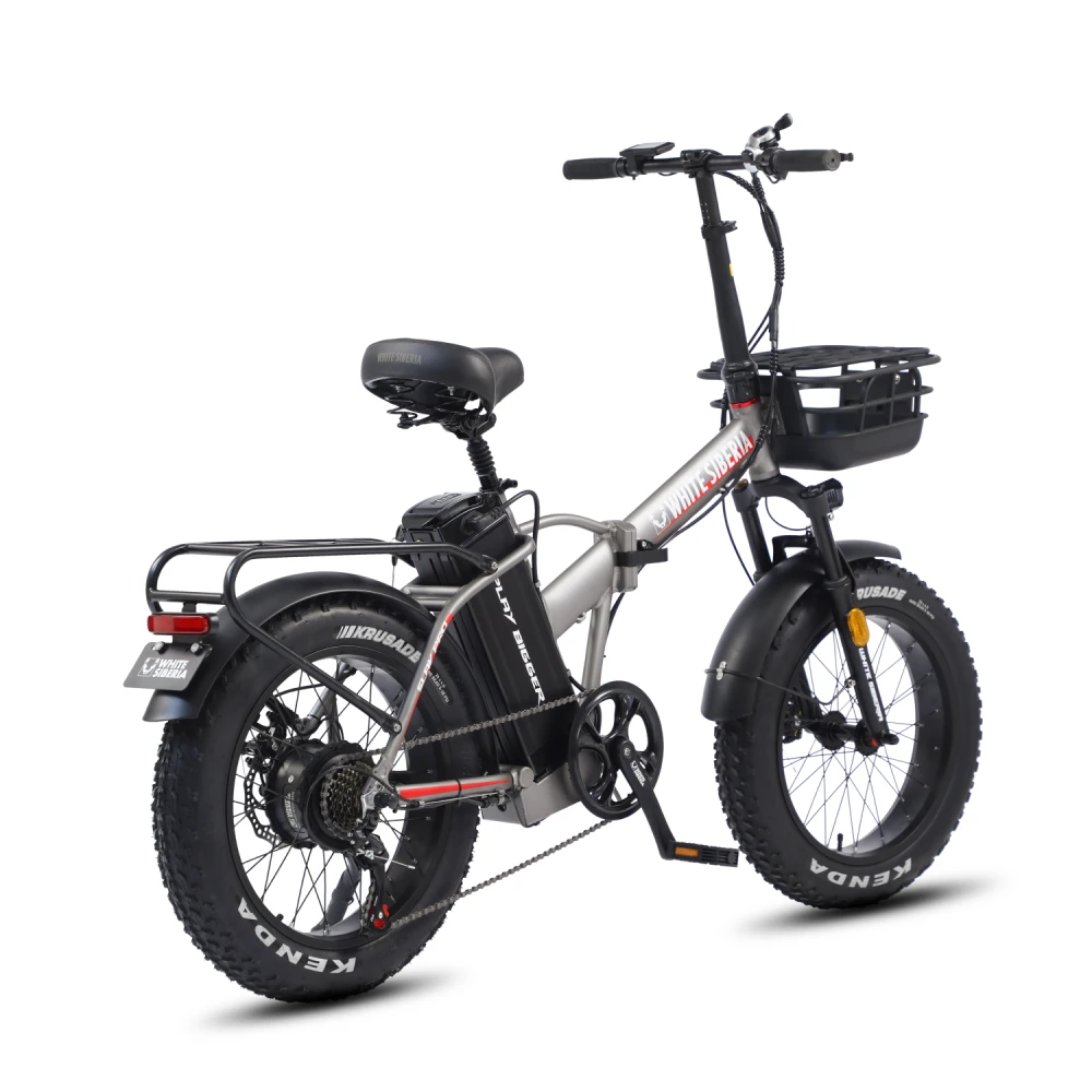 Электровелосипед WHITE SIBERIA SLAV PRO 1000W в матовом сером цвете – компактная эргономичная техника станет преданным другом на ежедневных прогулках. Байк выглядит современно и привлекательно. Идеально подходит для эксплуатации в пределах города и пригорода. Для приобретения модели по лучшей стоимости, получения бесплатной консультации предлагаем связаться с нами по телефону или в онлайн-режиме. Электробайк оборудован мощным электродвижком на 1000 Вт. Рама – усиленная, облегченная из авиаалюминия. Батарея с параметрами 48V 13A размещена за подседельной частью в защитном блоке, исключающем попадание влаги, механическое воздействие. Седло – удобное, регулируемое, повторяет анатомические части тела. Наличие передней корзины высвобождает руки, увеличивает степень удобства при езде в магазин. Безопасность и исключение непредвиденных ситуаций обеспечены информационным дисплеем, который информирует о скоростном режиме, дальности хода и степени зарядки АКБ. Главным преимуществом облегченной модели (30кг) является возможность трансформации). В сложенном состоянии техника приобретает минималистичные размеры, удобные для хранения в гараже и транспортировке в машине.