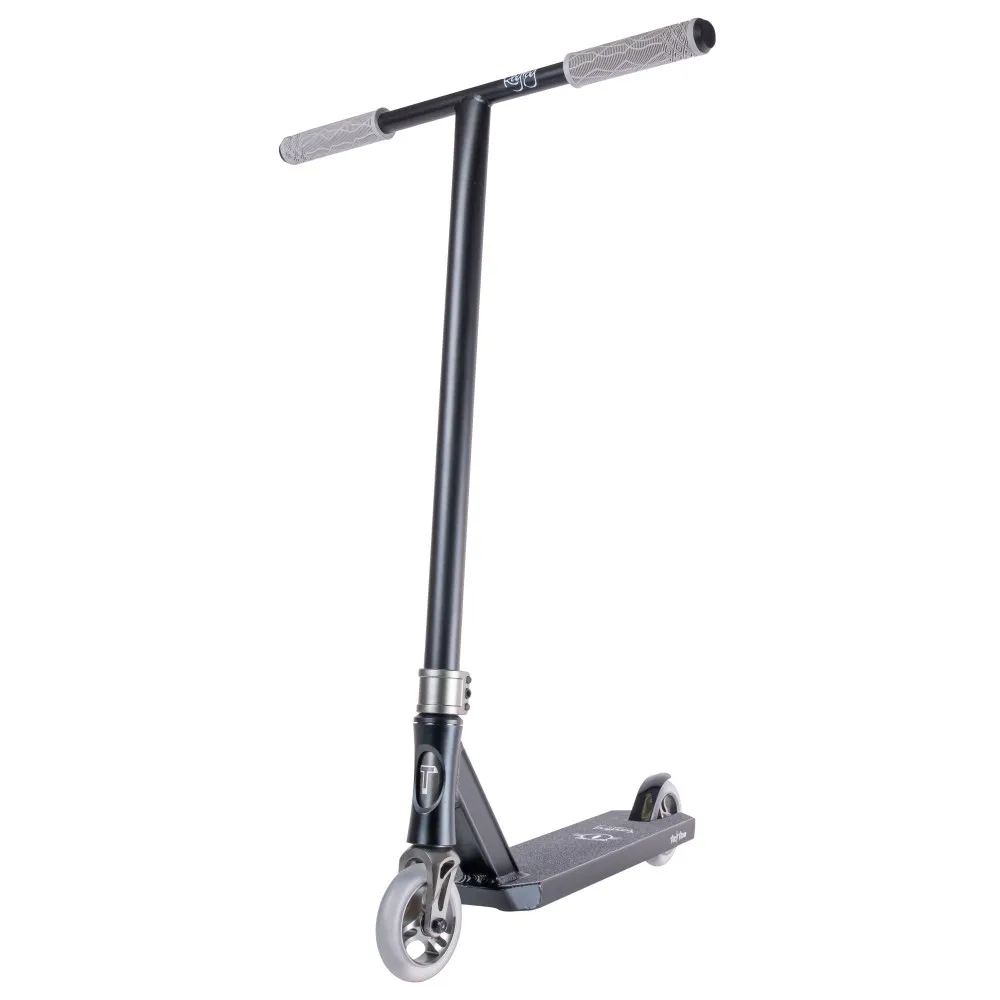 Самокат оснащен т-образным рулем и мягкими прорезиненными грипсами, благодаря которым риски соскальзывания рук при экстремальных действиях сведены к минимуму. По высоте от зажима руль составляет 63см, по ширине – 55 см.