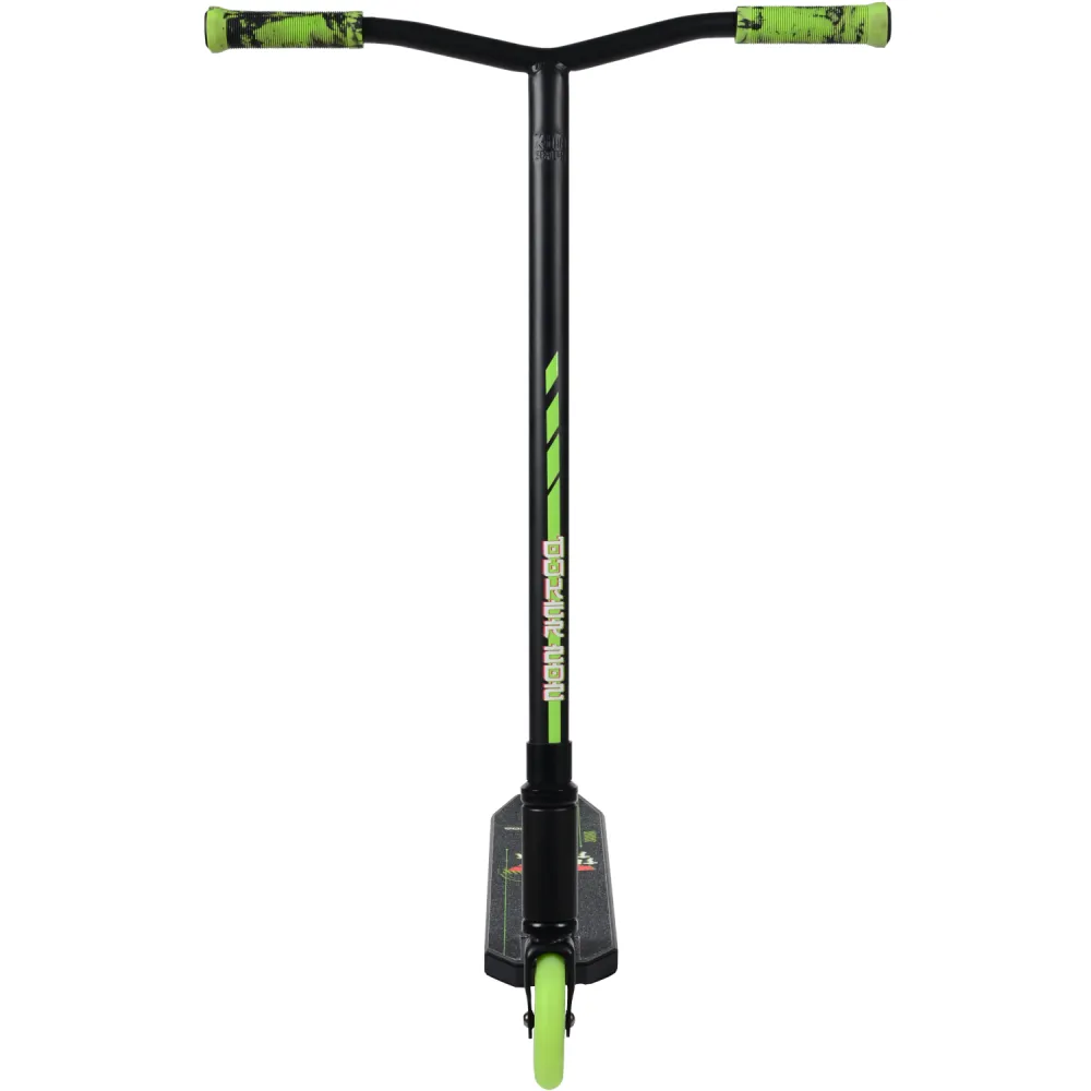Трюковый самокат Duker 202 создан специально для детей от 5 лет. Максимально доступные вес ребёнка-50 кг, рост-130-165см. Особенность модели в ярком внешнем виде и светящихся колёсах, что, конечно, не может не понравится юным ездокам. Высота Y-образного стального руля самоката от зажима составляет 60 см, ширина его 54 см, диаметр 31,8 мм. Резиновые грипсы 12 см обеспечивают надежное сцепление с рулём, гасят удары. Несмотря на то, что самокат насчитан на начинающих, он оснащён системой компрессии HIC. Плюс этой системы- небольшой вес с отличной надежностью. Размер деки составляет: длина-50 см, ширина-11 см, футспейс- 35 см. Дека состоит из термически устойчивого алюминиевого сплава с пластиковыми заглушками для снижения веса. Колеса на алюминиевых дисках имеют размер 110 на 24 мм.