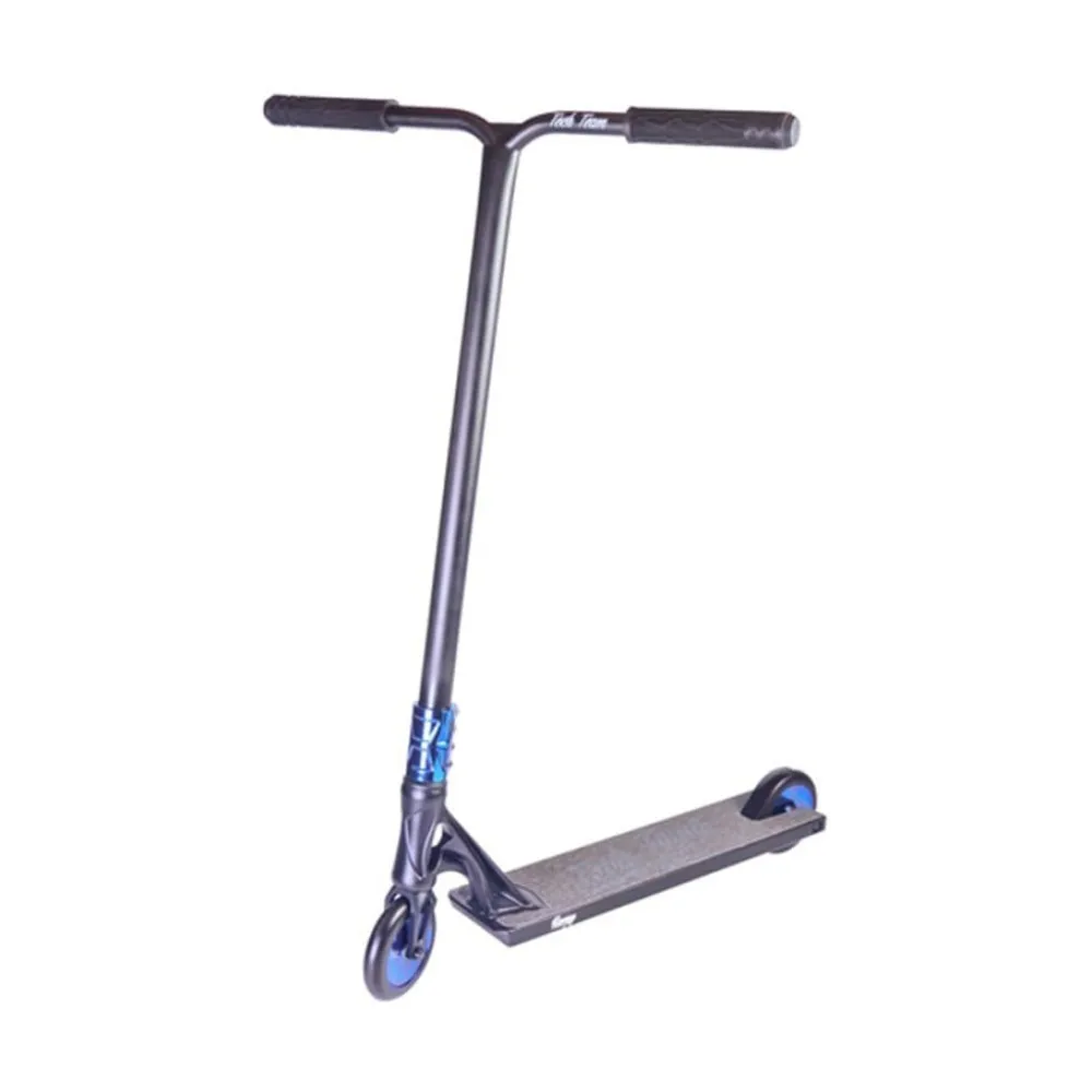 Небольшой вес самоката, удобный руль и надежная дека являются главными критериями безопасности выполнения трюков и маневрирования на дорогах. Рулевая часть имеет высоту руля 65 см. При необходимости может корректироваться до нужного размера. Изготовлена из хромолибдена. Внешний вид хрупкий и агрессивный одновременно. Самокат рассчитан на пользователей с параметрами роста 170-185 см, что подтверждает возможность пользования средством подростками и взрослыми.